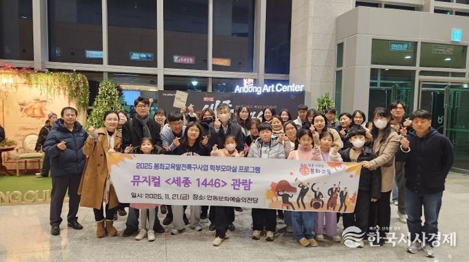 한국시사경제 문화팀 | 경상북도봉화교육지원청이 11월 21일 금요일 저녁, 교육발전특구 시범사업 '학부모마실' 프로그램의 하나로 뮤지컬 '세종 1446'을 관람하며 참가자 80명에게 깊은 문화적 감동과 교육에 대한 새로운 영감을 선사했다.