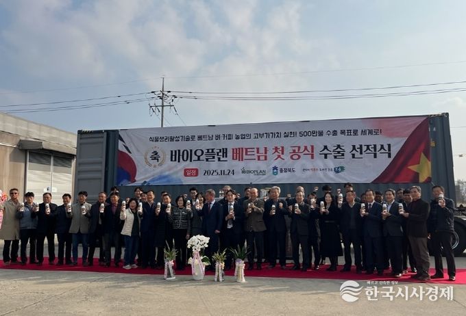 24일 바이오플랜 본사(보은군 삼승면 남부로 3808)에서 ‘베트남 첫 공식 수출 선적식’이 열리며 본격적인 해외 공급이 시작됐다. 이번 초기 수출 물량은 약 20만 달러 규모로, 향후 베트남 전역으로 공급망이 확대될 예정이다.