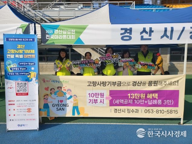 한국시사경제 권충언 기자 | 경산시는 23일 경산시민운동장에서 시작하여 경산시 일대를 돌아오는 2025 삼성현 전국 마라톤대회에서 경산 고향사랑기부제 홍보를 실시했다.