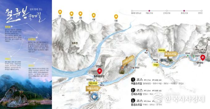 특히 코스 곳곳에 위치한 반야사, 한천팔경, 백화산 능선은 월류봉과 어우러진 자연미를 한눈에 감상할 수 있는 포인트다.