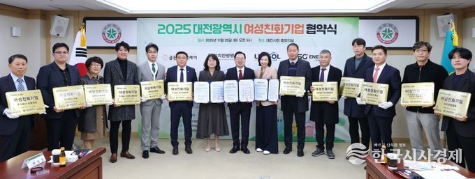 한국시사경제 대전취재본부 | 대전시는 25일 대전시청 10층 중회의실에서 여성이 일하기 좋은 근로환경 조성 및 성평등 일터문화 확산을 위해 노력하는 여성친화기업 12개 사에 현판을 수여했다.