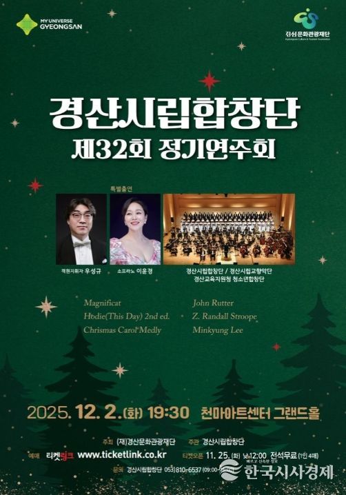 한국시사경제 노승선 기자 | 경산시립합창단이 오는 12월 2일 오후 7시 30분 영남대학교 천마아트센터 그랜드홀에서 2025년 마지막 정기연주회를 개최한다.