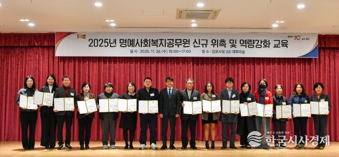한국시사경제 경기북부취재본부 | 김포시는 지난 26일 통·리장과 지역사회보장협의체 위원 등 지역 주민 181명을 신규 명예사회복지공무원으로 위촉했다. 이 중 대표 15명에게 위촉장을 수여했으며, 약 100명을 대상으로 역량 강화 교육도 함께 진행했다.