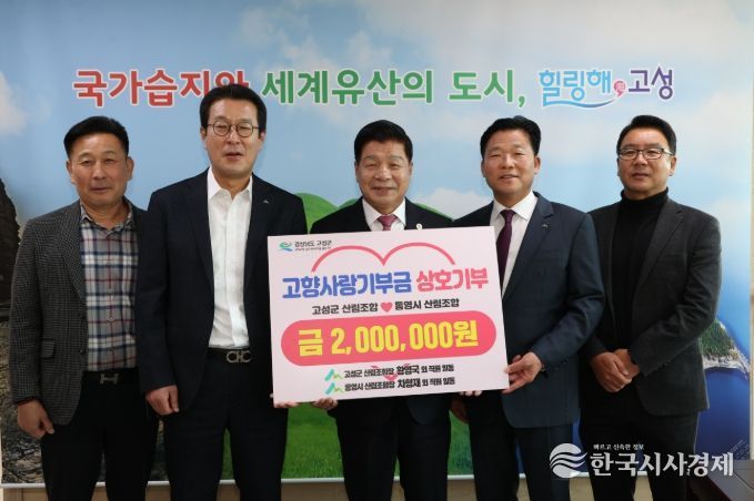 한국시사경제 윤광희 기자 | 고성군은 12월 2일, 고성군 산림조합과 통영시 산림조합(조합장 차형재)이 고향사랑기부제 취지에 동참하기 위해 각각 200만 원을 상호기부했다고 밝혔다.