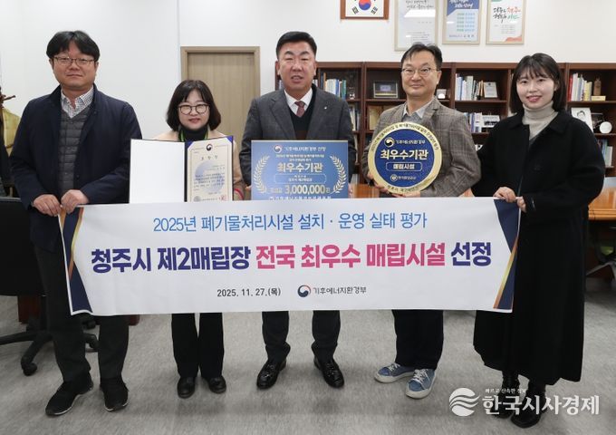 지난달 27일부터 이틀간 여수에서 개최된 폐기물처리시설 정책공유 워크숍에서는 기후에너지환경부 장관상을 비롯해 최우수시설 인증 현판과 포상금을 받았으며, 최우수 매립시설로 선정된 청주시 제2매립장의 우수 운영사례 발표도 진행됐다.