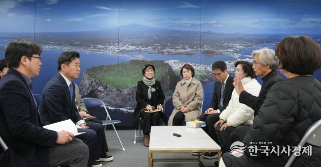 한국시사경제 노승선 기자 | 제주특별자치도는 제주평화인권헌장 제정과 관련해 2일(화) 도청 소통회의실에서 제주도민연대(대표 이향) 등 단체와 면담을 가졌다.