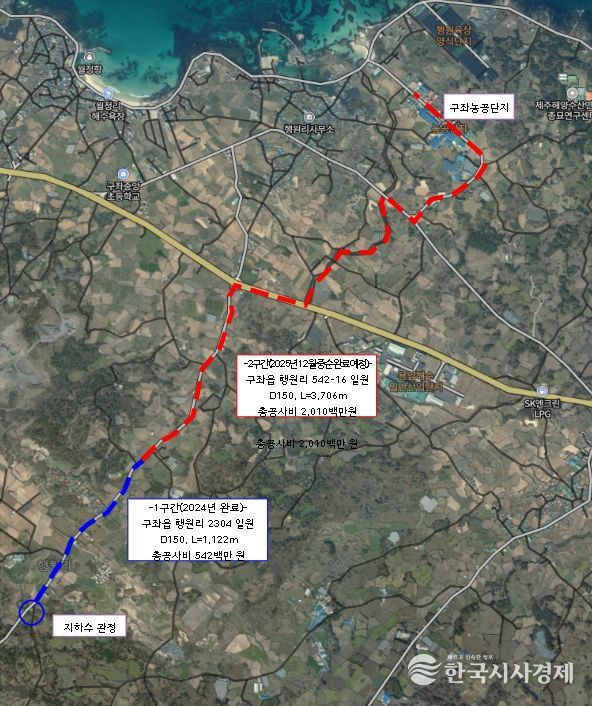 한국시사경제 사회팀 | 제주특별자치도는 구좌농공단지의 안정적인 공업용수 공급을 위한 ‘구좌농공단지 공업용수관로 정비사업’이 12월 중순 준공될 예정이라고 5일 밝혔다.