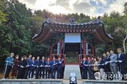 한국시사경제 김숙영 기자 | 연제구는 10월 23일 배산 전통정자 건립을 기념하는 배산 전통정자 ‘도화정’ 제막식을 개최했다. 이번 제막식은 배산의 자연경관과 지역 전통문화를 접목한 휴식 공간인 ‘도화정’의 완공을 기념하기 위한 자리로 마련됐다. 개회 및 내빈소개, 기념사 및 축사, 제막식, 기념촬영 순으로 진행됐으며, 주석수 연제구청장을 비롯해 구의장, 시·구의원, 주민 대표 등 70여 명이 참석해 자리를 빛냈다. ‘도화정(桃花亭)’은 연제구청 개청 30주년을 기념하고 연제구의 역사 이야기를 발굴하기 위한 배산 역사길 조성사업의 일환으로 건립됐다. 도화 낭자와 탈해장군(신라4대왕)의 이루지 못한 사랑 이야기를 주련에 담았으며, 배산의 맑은 자연 속에서 지역주민들이 전통적인 미과 여유를 즐길 수 있도록 전통적 구조로 건립됐다. 주석수 연제구청장은 “도화정은 배산의 아름다운 자연경관과 어우러져 지역주민들이 사랑하는 명소가 될 것”이라며, “앞으로도 지역의 역사와 문화를 담은 공간을 지속적으로 확충해 나가겠다”라고 말했다.