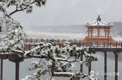 한국시사경제 충북취재본부 | 대설주의보가 내린 24일 하얀 눈이 소복이 내려앉은 충북 괴산군 동진천 옆 소나무길이 겨울 정취를 물씬 풍기고 있다. 내린 눈으로 동진천 산책로와 소나무 가로수길은 순식간에 은빛 풍경으로 변했다. 길게 늘어선 소나무 가지마다 눈꽃이 피어나 장관을 이루고있다