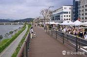 한국시사경제 기동취재팀 | 양평의 일상 속 자연이 새로운 관광공간으로 다시 태어났다. 양평군은 도시재생사업을 통해 조성한 강변 복합문화공간 ‘남한강 테라스’를 개장하며 군민과 관광객이 함께 즐기는 정주형 관광도시로의 전환을 본격화했다. 이번에 개장한 ‘남한강 테라스’는 양평읍 양근교에서 양평교까지 약 1.1km 구간에 걸쳐 조성됐다. 양평군은 도시재생사업 ‘남한강변 특화거리 조성사업’으로 총 95억원의 예산을 투입해 남한강변을 따라 걷기 좋은 산책로와 문화예술 테마거리, 친수 및 휴식공간을 갖춘 복합문화관광 명소로 탈바꿈시켰다. 기존 산책로에 폭 5m 규모의 데크길을 새로 놓고, 벤치와 가로수, 야간경관 조명을 추가해 낮에는 남한강 조망을 즐기고 밤에는 빛의 거리로 변하는 매력적인 공간으로 꾸몄다. 천혜의 남한강 물길과 도시재생의 결실이 어우러진 이번 사업을 통해 양평의 중심 강변이 다시 활기를 찾게 됐다. 양평군은 완공을 기념해 지난 26일 녩양평 물들임 테라스 축제’를 양평군청 앞 특설무대 일원에서 성황리에 개최했다. 이번 행사는 도시재생사업의 성과를 군민과 공유하고 지역 상권과 문