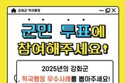 한국시사경제 사회팀 | 강화군은 오는 10월 27일부터 10월 31일까지 5일간 강화군 홈페이지를 통해 ‘2025년 강화군 적극행정 우수사례 군민 투표’를 실시한다고 밝혔다. 이번 투표는 행정에 대한 군민의 체감도와 참여를 높이기 위해 마련된 것으로, 강화군 각 부서에서 제출한 18건의 적극행정 우수사례 중 1차 심사를 통해 선정된 8건을 대상으로 군민이 직접 우수사례를 선택할 수 있다. 투표는 강화군청 홈페이지 ‘적극행정 우수사례 투표’ 배너를 통해 간편하게 참여할 수 있으며, 투표 결과는 군 내부 심사 점수와 합산하여 ‘적극행정 우수사례 및 우수공무원’ 선정에 반영될 예정이다. 강화군은 이번 군민 투표를 통해 현장 중심의 적극행정 성과를 널리 공유하고, 공직자의 적극적인 업무 추진 문화를 확산시켜 나간다는 방침이다. 박용철 군수는 “군민이 체감할 수 있는 적극 행정은 진정한 소통의 출발점”이라며 “앞으로도 창의적이고 능동적인 공직문화가 정착될 수 있도록 적극행정을 지속적으로 추진하겠다”고 밝혔다.
