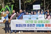 한국시사경제 대전취재본부 | 대전광역시 노사민정협의회(위원장 이장우)는 27일‘중장년층 지속가능한 고용을 위한 일‧생활균형 확산 캠페인’을 개최했다. 이번 캠페인은 대전광역시 노사민정협의회, 대전지방고용노동청, 노사발전재단 충청지사가 공동으로 추진한 협력형 환경·사회 가치(ESG) 실천 활동으로, 지역 중장년층의 고용안정과 건강한 일터문화 조성을 목표로 진행됐다. 참여 기관 및 관계자 20여 명 오전 11시부터 약 두 시간 동안 대덕구 송촌생활체육공원 및 계족산 황톳길 일원에서 중장년 고용서비스 홍보, 일‧생활균형(Work-Life Balance) 확산 활동, 환경·사회 가치(ESG) 실천 및 환경정화 활동 등을 진행했다. 노사민정협의회는 이번 캠페인을 통해 시민들에게 일과 삶의 균형이 존중받는 직장문화의 중요성을 알리고, 지속 가능한 지역 고용서비스 생태계 조성 필요성을 공감하는 기회가 될 것으로 기대하고 있다. 박대건 노사발전재단 충청지사장은 “이번 캠페인은 지역사회와 함께하는 ESG(환경·사회·지배구조) 실천의 모범 사례가 될 것”이고 강조했다. 권경민 대전시 경제국장은 “대전시는