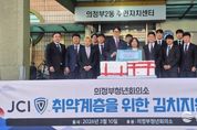 한국시사경제 경기북부취재본부 | 의정부시 의정부2동주민센터는 3월 10일 의정부청년회의소가 저소득 독거노인을 위해 김치 50상자(2kg 단위)를 기부했다고 밝혔다. 의정부청년회의소는 매년 성금, 쌀, 식료품 등의 기부는 물론, 지역 내 다양한 봉사활동을 통해 ‘청년들의 사회적 책임’과 ‘나눔 문화 확산’에 앞장서고 있다. 이번 기부 역시 경제적 어려움을 겪고 있는 독거노인들의 건강한 식생활을 지원하고자 마련했다. 양승태 회장은 “지역의 젊은 리더들이 모인 단체로서, 소외된 이웃을 살피고 나눔을 실천하는 것이 당연한 책무”라며 “앞으로도 지역사회와 지속적으로 연대하며 나눔 활동을 이어가겠다”고 전했다. 조미경 동장은 “온정의 손길을 내어준 의정부청년회의소에 진심으로 감사드린다”며 “기탁해 주신 후원물품은 실질적인 도움이 될 수 있도록 취약계층에게 지원하겠다”고 말했다.