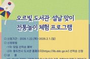 한국시사경제 경기북부취재본부 | 동두천시 도서문화사업소는 설날을 맞아 오르빛도서관에서 유아를 동반한 가족과 저연령 청소년을 대상으로 ‘설날 맞이 전통놀이 체험 프로그램’을 2월 4일 운영한다. 프로그램 참여 신청은 동두천시 도서관 홈페이지를 통해 선착순으로 접수하며, 신청 기간은 1월 22일부터 2월 1일까지다. 이번 프로그램은 가족이 함께 참여하며 세대 간 소통의 폭을 넓히고, 설 명절의 의미와 전통문화를 자연스럽게 체험할 수 있도록 기획됐다. 설날 관련 그림책 자유독서를 비롯해 만들기 키트를 활용한 윷놀이와 통통놀이 제작 및 게임 체험, 전통놀이 선생님과 함께하는 투호 등 체험 중심의 다채로운 프로그램으로 운영될 예정이다. 동두천시 도서문화사업소장은 “민족 최대의 명절인 설날을 맞아 어린이와 청소년이 전통문화를 놀이로 즐길 수 있도록 프로그램을 마련했다”라며 “가족이 함께 참여해 뜻깊은 명절 추억을 만들길 기대한다”라고 말했다. 프로그램과 관련한 자세한 사항은 동두천시 도서관 홈페이지에서 확인할 수 있다.