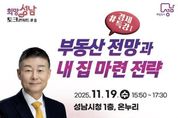 한국시사경제 경기취재본부 | 성남시는 오는 11월 19일 오후 3시 50분~5시 30분 시청 1층 온누리에서 ‘부동산 전망과 내 집 마련 전략’을 주제로 한 희망성남 토크콘서트 8강을 연다. 이번 초빙 강사는 고종완 한국자산관리연구원장이다. 고종완 원장은 변화하는 부동산시장 속에서 시민들이 알아야 할 부동산 정책, 향후 시장 전망, 내 집 마련 전략 등에 관해 강연한다. 고 원장은 한양대학교 도시공학박사로 건국대학교 부동산대학원 초빙교수, 한양대학교 부동산융합대학원 특임교수, LH자문위원 등을 역임했다. 현재 국민연금공단 대체투자위원회 위원, 금융위원회 금융발전심의회 위원 등으로 활동하고 있다. 저서로 ‘살 집 팔 집’, ‘대한민국 부동산 전쟁’ 등이 있다. 강연은 무료로 진행되며, 성남시 평생학습 통합 플랫폼 ‘배움숲’ 홈페이지를 통해 선착순 600명까지 신청할 수 있다. 성남시는 경제 특강 2탄으로 오는 12월 9일 김광석 한국경제산업연구원 경제연구실장을 초빙해 희망성남 토크콘서트 올해 마지막 강연(9강)을 연다.