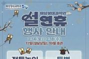 한국시사경제 경기취재본부 | 시흥시는 설 명절을 맞아 시민과 방문객이 뜻깊은 시간을 보낼 수 있도록 오는 2월 14일부터 18일까지 해양생태과학관에서 설 연휴 특별 행사를 운영한다. 해양생태과학관은 설날 당일인 2월 17일을 제외한 연휴 기간 정상 운영되며, 연휴 이후인 2월 19일은 휴관한다. 연휴 기간 방문객들은 해양 생태 전시 관람과 함께 명절 분위기를 느낄 수 있는 다양한 체험 프로그램을 즐길 수 있다. 특히 2월 14일부터 18일까지는 방문객 누구나 참여할 수 있는 특별 마술공연이 진행된다. 공연은 해양생태과학관 2층에서 오후 1시와 3시, 하루 2회 운영되며, 해양 전시 생물 관람과 교육 프로그램과 연계해 색다른 즐거움을 선사할 예정이다. 이와 함께 설 명절의 정취를 느낄 수 있는 전통 놀이 체험 공간도 마련된다. 해양생태과학관 3층 기획전시실에서는 윷놀이, 투호 던지기, 제기차기 등 설날을 대표하는 전통 놀이를 해양생태과학관 운영시간인 오전 10시부터 오후 6시까지 누구나 자유롭게 체험할 수 있도록 운영할 예정이다. 시 관계자는 “설날 당일을 제외한 연휴 기간 해양생태과학관을 정상 운영