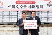 한국시사경제 경기취재본부 | 안양시는 전북 장수군으로부터 지역 특산물인 사과 500박스(1,500만원 상당)를 기부받아 관내 사회복지시설에 전달했다고 24일 밝혔다. 이번 기부는 양 도시의 친선 결연 29주년을 기념해 청정 자연 속에서 재배한 우수 농산물을 널리 알리고, 도농 교류 협력을 강화하기 위해 마련됐다. 23일 오후 1시40분 안양시청 본관 앞에서 열린 전달식에는 최대호 안양시장과 최연수 장수사과원예농협협동조합장, 조합 이사 및 관계 공무원 등이 참석했다. 23~24일 안양시청 청사 내에서는 조합 주관으로 장수 사과 시식 및 홍보, 판매 행사가 열렸다. 시는 기부받은 사과를 사회복지시설 26곳에 전달해 추석을 맞아 어려운 이웃들과 풍성한 수확의 기쁨을 함께 나눴다. 시는 장수군과 친선 결연의 의미를 돈독히 하며 지역 농특산물 홍보에도 적극 협력할 계획이다. 최대호 안양시장은 “장수군의 따뜻한 마음과 정성이 담긴 기부에 깊이 감사드린다”면서 “앞으로도 도농 상생의 가치 실현을 위해 다양한 교류 협력을 이어 가겠다”고 말했다.
