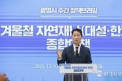 한국시사경제 경기취재본부 | 광명시가 심화하는 기후변화에 따른 폭설과 한파에 선제적으로 대응하기 위한 종합대책을 가동한다. 시는 10일 시청 중회의실에서 ‘2025년 겨울철 자연재난(대설·한파) 종합대책’을 주제로 정책브리핑을 열고, 예방, 대비, 대응 3단계 체계를 중심으로 겨울철 재난관리 종합대책을 설명했다. 박광희 안전건설교통국장은 “기후위기 시대에는 예측 가능한 대응보다 과잉대응이 시민의 생명을 지키는 길”이라며 “예측할 수 없는 재난에도 즉시 대응할 수 있도록 24시간 재난 대비체계를 가동하고, 현장 중심의 신속하고 과감한 조치를 통해 시민이 안심하고 생활할 수 있도록 최선을 다하겠다”고 말했다. 이상기후로 인한 폭설·한파가 반복될 가능성이 높아진 만큼, 예방·대비·대응의 전 과정에서 더욱 정밀하고 적극적인 대책을 추진해 시민이 안심할 수 있는 겨울을 만드는 데 총력을 기울이고 있다. 폭설에도 끄떡없도록… 예방, 대비, 대응의 3단계 체계 전면 강화 광명시는 빈틈없는 폭설 재난관리를 위한 예방, 대비, 대응의 3단계 체계를 전면 강화했다. 우선 겨울철 재해 취약성을