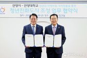 한국시사경제 경기취재본부 | 안양시와 안양대학교가 청년친화도시 조성을 비롯한 다양한 청년정책 추진을 위해 협력에 나섰다. 시는 12일 오전 9시 20분 안양시청 3층 상황실에서 안양대학교와 ‘청년과 함께하는 지역사회 가치창출 상호협력을 위한 업무협약(MOU)’을 체결했다. 이번 협약에 따라 양 기관은 지역사회의 청년 현안 해결 방안을 함께 모색하고, 청년친화도시 조성을 위한 각종 청년정책 사업을 추진하는 과정에서 긴밀히 협력하기로 했다. 특히 ▲안양시 청년사업(청년친화도시 조성・청년네트워크 등) 참여 및 지원 ▲안양대학교 주관 지역사회 가치창출 프로그램 행정적 지원 및 협력 ▲청년정책 활성화를 위한 지원 및 대외홍보 등에 대해 적극 협력하기로 했다. 시는 이번 협약을 통해 청년들이 지역사회에서 안정적으로 자립하고 도전할 수 있는 기반을 마련하고, 청년친화도시 조성을 실현해 나간다는 방침이다. 이날 협약식에는 최대호 안양시장을 비롯한 관계 공무원, 장광수 안양대학교 총장, 안양대 관계자 등이 참석했다. 최대호 안양시장은 “청년이 행복해야 도시가 발전할 수 있다”며 “이번 협약