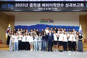 한국시사경제 경남취재본부 | 함양군은 8일 오후 5시 군청 대회의실에서 열린 ‘2025년 해외어학연수 프로그램 성과보고회’를 개최하고, 14박 16일간의 영국 연수를 마친 학생들의 값진 경험과 성장을 공유하는 시간을 가졌다. ‘해외어학연수 프로그램’은 세계를 바라보는 폭넓은 시야와 성숙한 국제적 감각을 함양하고, 글로벌 시대에 필요한 역량을 갖춘 인재를 양성하기 위해 2019년 처음 시작되어 올해 5기 배출했다. 올해 연수는 지난 7월 22일부터 8월 6일까지 14박 16일간 영국에서 진행됐으며, 학생들은 어학 수업뿐만 아니라 역사와 문화, 예술 체험 등 다양한 학습과 체험 활동을 경험하며 세계를 향한 시야를 넓혔다. 이날 성과보고회에는 진병영 함양군수와 학생, 학부모 등이 참석했으며, 연수 활동에 대한 전반적인 성과 보고를 시작으로, 학생들이 현지 생활과 문화 체험을 통해 소중한 경험을 영상으로 공유했다. 이어 학생들의 진심이 담긴 감사 편지와 소감문 발표를 통해 연수 과정의 생생한 감동과 의미를 함께 나눴다. 진병영 함양군수는 “이번 연수를 통해 얻은 경험은 여러분의 미래를 밝히는 소중한 자산이