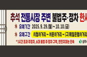 한국시사경제 경북취재본부 | 상주시는 민족 고유의 명절인 추석을 맞아 전통시장 활성화와 귀성객들의 편의를 위해 전통시장 주변 불법주·정차 단속을 한시적으로 유예한다. 2025. 9. 29.부터 10. 10.까지 12일간 주·정차 시간 1시간까지 불법주·정차 고정형 CCTV와 주행형CCTV 단속을 유예한다. 평일을 제외한 주말, 공휴일은 기존과 동일하게 24시간 단속을 유예한다. 유예구간은 시청사거리~서문사거리, 서문사거리~(구)제일은행사거리(패션거리), (구)제일은행사거리~현대하임파크사거리이다. 다만 장기 주·정차로 인한 교통혼잡을 방지하기 위해 유예구간에서도 1시간을 초과하여 주·정차하는 차량의 경우 단속을 실시하며, 유예구간 외 구역은 평시와 동일하게 단속을 유지한다. 그 외 시민 모두의 안전을 위해 상시 비워둬야 하는 구역으로 ‘6대 불법 주·정차 구역’인 교차로 모퉁이 좌우 5m 이내, 횡단보도, 인도, 소화전 반경 5m 이내, 버스정류소 좌우 10m 이내, 어린이보호구역 중 초등학교 정문으로부터 다음교차로까지의 도로와 기타구역인 안전지대는 평시와 동일하게 단속을 유지한다. 한편, 풍물시장길