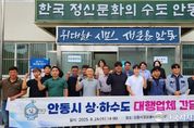 한국시사경제 경북취재본부 | 안동시는 9월 24일 맑은물사업국 2층 국장실에서 상․하수도 대행업체 10개 사 대표들과 맑은물사업국 직원 등 20여 명이 참석한 가운데, 사업 품질향상 및 상호협력 강화를 위한 ‘상․하수도대행업체 간담회’를 개최했다. 안동시는 상․하수도 대행업체를 지정해 전문 장비와 전문인력을 상시 유지하고 있으며 상․하수도관 파열, 호우 등 비상 상황 발생 시 신속한 현장 조치로 시민에게 안정적인 급수 및 배수 서비스를 제공하고 있다. 이번 간담회는 다가올 추석 연휴를 대비하여 상․하수도 대행업체의 안전하고 효율적인 대행 업무 수행을 위해 마련됐다. 공사 현장 내 작업자 안전교육 및 안전 조치사항, 급수전 폐전 및 수도계량기 교체 시 유의 사항, 배수 설비 시공기준 및 방법 등을 중점적으로 교육했다. 또한, 대행업체들이 겪고 있는 현장의 문제와 애로사항을 청취해 해소 방안을 마련하고, 상호협력 강화 방안을 모색했다. 안동시 관계자는 “최근 이상기후로 인한 집중호우, 가뭄 등이 빈번히 발생해 상․하수도 시설 관리에 대한 중요성이 대두되고 있다”며, “이번 간담회를 통해 대행업체와 업무
