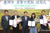 한국시사경제 경북취재본부 | 경주시는 자매도시인 일본 나라시의 카지 요시히로(鍛冶 佳広), 아사히로 요시코(朝広 佳子), 와다 요우스케(和田 陽介) 씨에게 명예시민증을 수여했다. 세 사람은 양 도시 간 국제교류와 우호 증진에 기여했으며, 특히 민간 차원에서 상공인 교류 활성화를 적극 지원한 공로가 인정됐다. 카지 요시히로 씨는 나라시 관광협회 회장과 나라청년회의소 이사장을 역임하며 경주청년회의소와 활발한 교류를 이어왔다. 아사히로 요시코 씨는 2000년 나라 등화회 회장 시절 경주에서 친선교류사업을 열며 문화 교류를 촉진했다. 와다 요우스케 씨는 ‘경주·나라 역사도시 심포지엄’ 추진과 청년회의소 자매결연 기념행사를 꾸준히 지원했다. 주낙영 경주시장은 “1970년 자매결연을 맺은 나라시는 올해로 55주년을 맞아 문화·관광·학술·경제 등 여러 분야에서 활발히 교류하고 있다”며 “특히 올해 경주가 APEC 정상회의를 통해 세계로 도약하는 중요한 시점인 만큼 나라시의 역할을 기대한다”고 말했다. 한편, 경주시는 지금까지 모두 61명의 외국인에게 명예시민증을 수여했다.