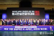 한국시사경제 경북취재본부 | 경주시가 2025년 APEC 정상회의 개막을 한 달 앞두고 시민의 힘을 하나로 모아 성공개최 의지를 다졌다. 시는 30일 경주실내체육관에서 ‘2025년 APEC 정상회의 성공개최 범시민실천결의대회’를 성황리에 개최했다고 밝혔다. 이번 행사에는 APEC 범시도민지원협의회(공동회장 박몽룡·이상걸) 소속 회원을 비롯해 유관기관, 시민단체, 자원봉사자 등 경주시민 3천여 명이 참석해 시민과 함께하는 APEC의 진정한 의미를 되새겼다. 특히 주낙영 경주시장을 비롯해 김석기 국회 외교통일위원장, 이동협 경주시의장, 최병준 경북도의회 부의장을 비롯해 시·도의원 전원이 참석해 시민과 함께 손님맞이 실천 결의를 다지고 성공 개최를 향한 열기를 더했다. 행사장 내부에는 시민단체들이 자체 제작한 손님맞이 실천 결의 현수막이 곳곳에 걸려 있어, APEC 성공개최를 향한 시민들의 뜨거운 참여 의지를 생생하게 보여주었다. 본행사에 앞서 참석자들은 ‘APEC 시민 10대 실천과제’를 함께 되새기며, 모든 시민이 APEC의 주인으로서 행동할 때 성숙한 시민의식과 지속가능한 경주를 만들어