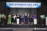 한국시사경제 경북취재본부 | 영천시자원봉사센터는 지난 27일 ‘2025 장기자원봉사자 인증서 수여식’을 개최하고, 총 62명의 장기자원봉사자에게 인증서를 수여했다. 특히, 이번 행사에서는 영천시 최초로 10,000시간 이상 봉사를 실천한 이상숙 수지침봉사회장이 박수갈채를 받으며, 지역사회 자원봉사의 귀감으로 주목을 받았다. 올해 인증 대상자는 봉사 시간에 따라 ▲1,000시간 이상 34명 ▲2,000시간 이상 18명 ▲3,000시간 이상 3명 ▲4,000시간 이상 2명 ▲5,000시간 이상 2명 ▲6,000시간 이상 2명 ▲10,000시간 이상 1명 등 총 62명이 수상의 영예를 안았다. 이날 행사는 식전 공연을 시작으로 활동 영상 시청, 인증서 및 명패 수여, 기념사진 촬영, 만찬 순으로 진행됐으며, 자원봉사자들의 헌신에 감사와 존경을 표하는 따뜻한 분위기 속에서 마무리됐다. 자원봉사센터는 4,000시간 이상 봉사자에게 1돈 상당의 금배지를 수여해 그 헌신에 대한 예우와 감사를 전했으며, 2,000시간 이상 봉사자의 명패는 자원봉사센터 로비 내 ‘명예의 전당’에 게시될 예정이다. 구홍