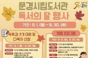 한국시사경제 경북취재본부 | 문경시립도서관(중앙·모전·문희·작은도서관)은 9월 1일부터 30일까지 독서의 달을 맞아 시민들이 책과 도서관을 좀 더 가까이할 수 있도록 다양한 행사와 독서문화 프로그램을 운영한다. 이번 독서의 달 행사는 문경시립도서관 도서 대출 회원이면 누구나 참여할 수 있으며, △독후감 쓰기 대회 및 다독자 선정 프로그램을 비롯해 각 도서관마다 △두배로 데이 △연체자 해방의 날 △도서 전시 △과년도 잡지 무료 배부 △보물책 찾기 △도서 필사 이벤트 등 특색 있는 프로그램 및 이벤트를 운영한다. 더불어 모전도서관에서는 9월 13일, 20일 양일간 관내 초등학생을 대상으로 그림책 원예 테라피, 조물조물 떡 이야기 등의 체험 프로그램을 운영할 예정이며, AR·XR 추천도서 및 그림책 원화 전시 등 유아를 위한 전시도 준비되어 있다. 김화자 문화예술회관장은 “책 읽기 좋은 9월을 맞아 시민들이 도서관을 방문하여 독서의 즐거움과 여유를 만끽하며, 도서관에서 새로운 즐거움을 발견할 수 있는 계기가 되기를 바란다.”고 말했다.