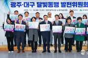 한국시사경제 광주취재본부 | 광주광역시와 대구광역시가 18일 시청 3층 소회의실에서 ‘광주·대구 달빛동맹 발전위원회’를 열어 두 도시 간 실질적인 협력 강화 방안을 논의했다. 이날 회의에서는 기존 공동 협력과제의 추진 상황을 공유하고, 신규 협력과제 심의와 정부·국회에 전달할 메시지 퍼포먼스를 진행했다. 두 도시는 지난 9월17일 국회에서 오랜 숙원사업인 달빛철도 건설사업의 예비타당성조사 면제를 촉구하는 공동선언문을 발표했다. 이어 군공항 조기 이전, 식품·뿌리·의료·로봇산업 내 특별관 운영, 달빛동맹 자원봉사 교류, 문화예술 교류 등 5개 분야 35개 과제에 대해 지속 협력했다. 이날 회의에서는 달빛동맹의 협력 강화를 위해 지난달 15일 실무회의에서 논의됐던 신규 과제 11건을 심의·의결했다. 주요 신규 협력과제는 ▲광주・대구 AX 거점도시 조성 ▲AI 융합 핵심인재 공동 양성 ▲미래모빌리티산업 육성 공동과제 발굴 ▲‘5극3특 전략’ 실현을 위한 공공기관 2차 이전 등이다. 고광완 행정부시장은 “이번 회의는 달빛동맹의 실질적 협력을 더욱 구체화하는 계기가 됐다”며 “앞으로도 두 도시가