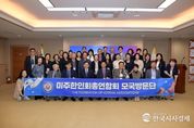 한국시사경제 광주취재본부 | 광주광역시는 지난 24일 미주한인회총연합회 서정일 총회장을 비롯한 전·현직 회장단 50여명이 광주를 방문했다고 밝혔다. 이들은 광주시와 미주지역 교민사회 간 교류 확대 및 협력 기반 강화를 위해 방문했다. 회장단을 맞이한 고광완 행정부시장은 “미주한인회의 광주 방문을 진심으로 환영한다”며 “앞으로도 미주총련과 지속적으로 교류하고 협력해 나가길 기대한다”고 밝혔다. 고 부시장은 또 광주시 현안인 국가AI컴퓨팅센터 광주 유치 현황에 대해 “광주시는 전력, 부지, 국가AI센터 운영 경험, AI 2단계 예비타당성조사 면제 등 국가 AI컴퓨팅센터 광주 유치를 위한 준비가 잘 돼 있다”며 “해외 동포 여러분께서도 광주시 국가 AI컴퓨팅센터 유치에 많은 관심과 지지 부탁드린다”고 말했다. 서정일 미주한인회총연합회장은 “이번 방한의 첫 방문지인 광주시의 환대에 270만 미주한인 대표단체로서 감사의 뜻을 전한다”며 앞으로도 한인회에 대해 적극적인 지원과 협력을 요청했다. 미주한인회총연합회는 ‘추석맞이 이웃돕기 성금’ 100만원을 기부, 지역사회에 따뜻한 마음을 전했다. &n