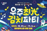 한국시사경제 광주취재본부 | 광주광역시가 오는 10월31일부터 11월2일까지 사흘간 시청 일원에서 ‘제32회 광주김치축제’를 개최해 풍성한 즐길거리로 방문객을 맞이한다. ‘우주최광(光) 김치파티’를 주제로 한 이번 광주김치축제는 풍요와 안녕에 감사하는 ‘김치 감사제’를 시작으로 ▲대한민국 명장 ‘안유성쇼’ ▲천인의 밥상 ▲K-김치파티 ▲김치마켓 ▲김치 팝업 및 대통령상 수상 김치 전시 등 다채로운 프로그램이 펼쳐진다. ‘안유성쇼’에서는 넷플릭스 흑백요리사에 출연한 안유성 명장이 광주김치를 사용해 생중계 요리쇼를 선보인다. 명장의 칼·명장의 김칫독·명장의 식탁을 주제로 광주김치를 재해석한 요리를 소개하고 관람객에게 시식 기회를 제공한다. ‘천인의 밥상’은 다양한 김치 및 김치 곁들임 요리를 자유롭게 세분·소분해 구매할 수 있는 판매 공간이다. 올해 ‘천인의 밥상’에는 ‘묵은지 오일 파스타’, ‘한돈 삼겹 김치짜파’, ‘광주김치찜’, ‘김치 고기전’ 등 명인의 대표 메뉴를 포함한 50여 종의 메뉴가 판매된다. 축제의 핵심 공연은 전통연희와 DJ뉴진스님의 디제잉이 결합한 ‘K-김치파티’ 무대로 꾸며진다.