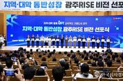 한국시사경제 광주취재본부 | 광주시와 지역 17개 대학이 ‘라이즈(RISE·지역혁신중심 대학지원체계) 사업’을 통해 지역혁신을 선도한다. 광주시와 17개 대학은 5년간 총 65개 사업 773억1000만원 규모로 RISE 사업을 추진한다. 광주광역시는 3일 전남대학교에서 ‘광주라이즈(RISE) 비전 선포식’을 개최, 광주라이즈 사업의 공식 출범을 알렸다. 17개 대학 합동 출범식으로 열린 이날 선포식에는 강기정 시장, 신수정 광주시의회 의장, 이정선 광주시교육감, 각 대학 총장과 RISE사업단장, 기업 대표 등 300여 명이 참석했다. 이들은 지역(지)·산업(산)·대학(학)·연구기관(연)의 협력을 통한 교육·산업 선순환 생태계 구축에 대한 공동 의지를 다졌다. 행사는 공동위원장을 맡은 강기정 시장과 이근배 전남대 총장의 개회사로 시작했으며, 두 사람은 개회사를 통해 지역혁신과 대학 간 협력의 중요성을 강조했다. 신수정 광주시의회 의장과 이정선 광주시교육감은 축사를 통해 광주의 미래 성장에 대한 기대를 전했다. 이후 17개 대학의 RISE 사업 소개 영상 상영과 함께 대학 라이즈사업단 대표