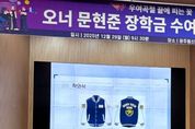 한국시사경제 광주취재본부 | 문현준 e스포츠 선수의 팬클럽은 29일 광주동신고등학교에 장학금 400만원과 600만원 상당의 후원물품을 기탁했다. 광주동신고 출신인 문현준(활동명 ‘Oner’) 선수는 세계적인 e스포츠 팀 T1의 주전 멤버로 활약하고 있다. 엄격한 자기관리와 과감한 결단력으로 전 세계적으로 인기를 누리고 있다. 특히 지난 11월 9일 열린 '리그 오브 레전드 2025 월드 챔피언십'에서 우승하며 세계 최고의 실력을 입증했다. 팬클럽 측은 문 선수가 꿈을 키웠던 광주동신고 후배들을 격려하기 위해 이번 기부를 결정했다. 장학금은 1~2학년 학생 8명에게 50만원씩 수여됐다. 또 문 선수의 월드 챔피언십 우승을 기념해 특별 제작한 ‘친필 사인 야구점퍼’ 등 600만원 상당의 물품을 학생들에게 전달했다. 장학금을 받은 2학년 이성준 학생은 “선배의 사랑에 힘 입어 학업에 전념할 수 있을 것 같다”며 “끊임없이 도전하고 실력을 쌓아 사회에 기여하는 인재가 되겠다”고 소감을 밝혔다. 광주동신고 한래진 교장은 “문 선수와 팬들의 따뜻한 마음이 학교 공동체에 선