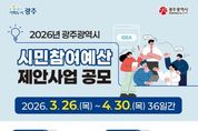 한국시사경제 광주취재본부 | 광주광역시는 2027년도 예산 과정에 시민참여를 보장하기 위한 ‘시민참여예산 제안사업’을 4월30일까지 접수한다. 시민참여예산은 재정 운영의 투명성을 높이고, 재정민주주의를 강화해 시민 삶의 질을 향상시키기 위한 제도다. 광주시에 거주하는 시민이나 단체는 누구나 사업을 제안할 수 있다. 제안 대상 사업은 단년도에 완료되는 광주시 소관 사무로 ▲시정참여형 ▲청년참여형 등 두 가지를 접수한다. 시정참여형은 시민 생활과 밀접하고 시민 수혜도가 높은 5억원 이하 사업이다. 청년참여형은 일자리, 창업지원, 맞춤형 교육, 창작활동 등 청년 정책 사업으로 예산 제한 없이 제안할 수 있다. 다만, 민원성 사업, 특정단체 중복성 사업, 일회성 공연 축제, 공익에 저해되는 사업 등은 심사에서 제외한다. 참여는 광주시 누리집 시민참여예산시스템 주민e참여시스템 혹은 시민광장 광주온으로 온라인 신청할 수 있다. 전자우편과 우편(광주 서구 내방로111, 예산담당관실) 신청도 가능하다. 광주시는 접수된 제안사업에 대해 소관부서 검토, 시민투표,