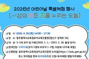 한국시사경제 광주취재본부 | 광주시교육청유아교육진흥원은 ‘제104회 어린이날’을 맞아 오는 4월 30일 본원 실내·외 체험영역 및 시청각실 등에서 어린이날 특별 가족체험 ‘세·모·꿈(세상의 모든 꿈을 누리는 오늘)’ 행사를 개최한다. 이번 행사는 어린이날을 기념해 유아들에게 다채로운 놀이 경험을 제공하고, 가족이 함께 참여하는 건강한 놀이 문화를 확산하기 위해 마련됐다. 행사는 4월 30일 오후 2시부터 5시30분까지 만 3~5세 유아와 가족 등 총 100가정(총 250명 내외)을 대상으로 진행된다. 특히 유아의 발달 단계에 맞춰 ▲우주마을·아이(AI)놀이터 등 10개 실내·외 체험 활동 ▲창의 체험(페이스페인팅, 풍선아트, 고무줄 나비 날리기) ▲특별 공연(버블·매직·레이저 쇼) 등이 운영된다. 폴라로이드 사진 촬영과 돌림판 돌리기 등 가족 단위 부대행사도 열린다. 또 지역 대학과 연계를 통해 ‘예비 유아교사’인 전남대학교 유아교육과 학생 30여 명이 자원봉사자로 활동하며 안전한 놀이를 지원한다. 행사 참여 신청은 오는 31일 오전 9시부터 광주유아교육진흥원 누리집에서