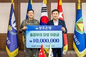한국시사경제 광주취재본부 | 광주은행은 26일, 77주년 국군의 날을 앞두고 지역방위 책임사단인 제31보병사단(사단장 이일용)을 방문해 위문금 1천만원을 전달하고 장병들을 격려했다고 밝혔다. 이날 전달식에는 고병일 광주은행장, 이일용 제31보병사단 사단장 및 관계자가 참석한 가운데, 지역 안보의 최일선에서 헌신하는 장병들의 노고에 감사를 전하는 뜻깊은 시간을 가졌으며, 전달된 위문금은 장병들의 복지 증진과 사기 진작을 위해 사용될 예정이다. 고병일 광주은행장은 “지역민들이 안심하고 일상을 누릴 수 있는 것은 국토방위를 위해 헌신하는 장병 여러분 덕분이다”라며, “광주은행은 지역 대표은행으로서 ESG경영을 기반으로 다양한 사회공헌 활동을 지속적으로 확대해 나가겠다”고 말했다. 한편, 광주은행은 매년 제31보병사단을 방문해 위문활동을 이어오고 있으며, 군 장병 적금 및 전용 제휴카드 출시 등 맞춤형 금융서비스 제공에도 앞장서고 있다.