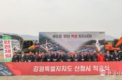 한국시사경제 권충언 기자 | 강원특별자치도는 3월 30일 오전 11시 춘천시 동내면 고은리 일원에서 ‘강원특별자치도 신청사 착공식’을 개최했다. 착공식에는 김진태 도지사를 비롯해, 한기호 국회의원(춘천‧철원‧화천‧양구을), 김시성 도의장, 신영재 홍천군수, 이병선 속초시장, 이상호 태백시장, 양양부군수, 지역 주민대표 등 1천여 명이 참석했다. 신청사 건립사업은 약 5,000억 원 사업비가 투입되며, 도민 중심의 복합행정문화공간으로 조성된다. 신청사는 약 10만㎡ 부지에 지하 2층, 지상 9층 규모로 건립되며, 다목적 강당과 전면 광장, 옥상정원 등을 갖춰 도민이 언제나 찾아와 소통하고 이용할 수 있는 열린 공간으로 조성된다. 특히 기존 청사의 주요 불편사항으로 지적됐던 주차난 해소를 위해 1,600대 이상 수용 가능한 주차공간을 확보하는 등 도민 편의 증진과 행정 효율성 제고를 동시에 고려한 스마트 청사로 건립된다. 도는 이번 부지 조성 및 진입도로 등 기반시설 공사를 시작으로 올해 하반기 본격적인 건축공사에 착수해 2029년 준공을 목표로 사업을 추진할 계획이다. 김진