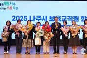 한국시사경제 권충언 기자 | 전라남도 나주시는 지난 7일 나주문화예술회관에서 나주시 어린이집 보육 교직원 550여 명이 참석한 가운데 ‘어린이집 보육 교직원 한마음대회’를 개최했다. 나주시어린이집연합회 주관으로 열린 이번 행사는 보육 교직원 윤리 강령 선서, 보육 교직원 유공 표창장 시상, 재즈 색소폰 및 댄스 크루 공연 등으로 구성되어 보육 교직원들의 사기를 높이는 의미 있는 행사로 꾸며졌다. 나주시어린이집연합회 김귀순 회장은 “오늘 한마음대회가 보육 교직원들의 화합과 단결을 도모하는 계기가 되었으면 한다”며 “앞으로도 이런 행사를 통해 직무스트레스를 완화하고 더욱 발전해 나가는 나주시어린이집연합회가 되기 위하여 노력하겠다”고 말했다 윤병태 나주시장은 “나주시 아이들을 위해 보육 현장에서 묵묵히 근무하시는 모든 보육 교직원분의 노고를 격려하는 자리에 함께해서 기쁘다”며 “항상 우리 아이들이 건강하고 행복하게 자랄 수 있도록 힘써주시는 보육 교직원분들께 감사드린다”고 밝혔다.