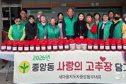 한국시사경제 권충현 기자 | 오산시 중앙동은 지난 30일 새마을지도자 중앙동 부녀회가 지역 내 어려운 이웃을 위해 직접 담근 고추장 90통을 전달했다고 밝혔다. 이번 나눔은 새마을부녀회 회원들이 재료 준비부터 담그기까지 전 과정에 직접 참여해 정성을 더했으며, 관내 저소득층 가구에 전달되어 식생활 지원은 물론 이웃의 따뜻한 관심과 온기를 함께 전하는 계기가 될 것으로 기대된다. 중앙동 새마을부녀회는 매년 고추장과 삼계탕 등 다양한 먹거리 나눔 활동을 통해 이웃사랑을 실천하며 지역사회에 따뜻한 변화를 만들어가고 있다. 심옥자 중앙동 새마을부녀회장은 “회원들의 정성과 마음을 모아 준비한 만큼 이웃들에게 작은 힘이 되길 바란다”며 “앞으로도 지속적인 나눔 활동을 이어가겠다”고 말했다. 백경희 중앙동장은 “항상 이웃을 먼저 생각하며 실천해 주시는 새마을부녀회에 깊이 감사드린다”며 “소중한 나눔이 꼭 필요한 곳에 전달될 수 있도록 최선을 다하겠다”고 밝혔다.