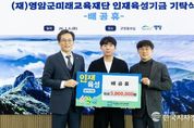 한국시사경제 권충현 기자 | 배공휴 대양축산 대표가 6일 영암군청을 찾아 영암군미래교육재단에 지역 인재 육성 장학금 500만원을 기부했다. 2017년부터 해마다 장학금 전달을 이어온 배 대표는, 이날 기부에 아들 경준 씨와 함께해 눈길을 끌었다. 경준 씨는 아버지의 나눔을 이어 장학금 기부를 지속해 나가겠다는 뜻을 밝히며 세대를 잇는 나눔의 모범을 보였다. 배 대표는 “대양축산은 지역사회와 함께 성장해 왔고, 지역민에게 받은 신뢰에 보답하는 지역사회 환원은 당연한 일이다”고 말했다.
