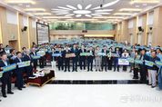 한국시사경제 권충현 기자 | 화순군은 10월 2일 군청 대회의실에서 ‘농어촌 기본소득 시범사업 화순 유치 결의대회’를 열고, 시범사업 유치를 위한 강한 의지를 밝혔다. 이번 결의대회는 인구 감소와 고령화 등으로 침체된 농촌 지역에 활력을 불어넣기 위해 정부가 추진 중인 ‘농어촌 기본소득 시범사업’의 대상지로 화순군이 선정될 수 있도록 결의를 다지는 자리였다. ‘농어촌 기본소득 시범사업’은 전국 69개 인구감소지역 중 6개 군을 선정해 2026년부터 2년간 해당 지역 주민 모두에게 매월 15만 원의 기본소득을 지급하는 정책이다. 결의대회에는 구복규 화순군수, 오형열 군의회 의장을 포함한 군의원 10명이 참석해 피켓을 들고 화순군의 적극적인 참여 의지를 나타냈다. 또한 화순군 농촌지도자회 회원 20여 명과 군청 직원 250여 명도 미니 현수막을 펼쳐 보이며 시범사업 유치에 대한 강한 의지를 나타냈다. 행사 말미에는 참석자 전원이 ‘농어촌 기본소득 시범사업은 화순으로’를 힘차게 외치며, 화순군민의 단합된 염원과 결의를 다시 한번 확인했다. 구복규 군수는 “침체된 농촌에 활력을 불