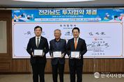 한국시사경제 권충현 기자 | 영암군에 534억원 투자, 140명 고용 규모의 2개 수산식품 기업이 들어선다. 24일 전라남도청에서 전라남도와 영암군이, ㈜해진수산, ㈜해진식품과 투자협약을 체결하고 협력을 약속했다. 이날 협약에 따라 ㈜해진수산은 332억원을 투자해 영암군 삼호읍에 마른김 생산시설을 조성하고, 80여 명을 고용할 예정이다. ㈜해진식품도 같은 지역에 202억원을 투자해 조미김 생산시설을 구축하고 60여 명의 일자리를 창출할 계획이다. 영암군은 인·허가 신속 처리, 기반시설 확충 등 행정 지원으로 이번 협약을 뒷받침하고, 지역·기업 상생모델로 지역경제 활성화를 견인한다는 방침이다. 이날 투자협약에는 두 기업의 임한택 대표, 김영록 전라남도지사, 윤재광 영암군부군수 등이 함께 했다.