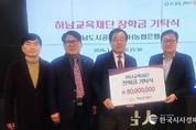 한국시사경제 기동취재팀 | 하남교육재단은 29일 하남시청에서 하남도시공사로부터 하남시 미래인재육성을 위해 장학금과 캠퍼스투어 운영을 위한 기부금 8천만 원을 전달받았다. 하남도시공사는 매년 지역 교육 발전과 미래 인재 양성을 위해 하남교육재단에 장학금 및 학생들의 진로 탐색 기회 확대를 위한 캠퍼스 투어 운영을 기탁하며 공기업으로서의 사회적 책임을 실천하고 있다. 최철규 사장은 “지역 학생들이 경제적 부담을 덜고, 폭넓은 진로 경험을 통해 자신의 꿈을 구체화할 수 있도록 지원하고자 이번 지정기탁을 진행했다”며 “앞으로도 지역사회와 함께 성장하는 공기업이 되겠다”고 말했다. 이현재 시장(하남교육재단 이사장)은 “매년 변함없는 관심과 지원을 보내주시는 하남도시공사에 감사드린다”며 “기탁금이 지역 학생들의 꿈을 키우는 밑거름이 될 수 있도록 투명하고 효율적으로 운영하겠다”고 밝혔다. 한편, 하남교육재단은 지역사회와의 협력을 바탕으로 장학사업과 진로·교육 프로그램을 지속적으로 확대하며 하남시 미래 인재 양성에 힘쓰고 있다.