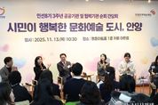 한국시사경제 기동취재팀 | 안양시는 13일 오전 10시 30분 평촌아트홀 1층 카페 아트림에서 ‘시민이 행복한 문화예술 도시, 안양’을 주제로 (재)안양문화예술재단과 민선 8기 3주년 공공·협력기관 순회 간담회를 개최했다. 이번 간담회는 민선8기 3주년을 맞아 안양시 문화예술 정책의 주요 성과를 공유하고, 현장 예술인과 시민의 의견을 직접 청취하기 위해 마련됐다. 행사에는 안양 지역 예술인과 문화단체 관계자, 시민 등 120여 명이 참석해 안양의 문화예술 비전과 발전 방향에 대해 활발한 소통의 시간을 가졌다. 간담회에서는 ▲시민이 주인공이 되는 ‘안양춤축제’ ▲생활문화로 피어나는 ‘마을축제 지원사업’ ▲지역·청년예술인 창작활동 지원 ▲안양박물관과 공공예술프로젝트(APAP) 등 시민이 함께 만들어가는 다양한 문화예술 사례가 소개됐다. 안양춤축제는 안양만의 축제가 아니라 관광형 축제로 거듭나고 있다. 지난 9월 3일간 열린 축제에는 총 14만2,000여명이 참여했는데, 이 중 40%가 타 시도민으로 추산된다. 춤축제 기간 열린 유스클럽챔피언십의 한 고등학생 참가자는 “대회 분위기가 생각보다 훨씬 뜨거웠고 행복했다”