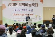 한국시사경제 기동취재팀 | 군포시는 군포시장애인종합복지관 주관으로 10월 31일 장애인센터 내 다목적실에서 2025년 장애인문화예술축제를 개최했다. 이번 축제는 2025년 경기도 장애인 문화예술진흥사업으로 선정되어 경기도와 군포시의 지원으로 장애인과 비장애인이 함께 어우러져 창의적이고 감동적인 공연과 전시가 펼쳐졌다. 하은호 시장과 시낭송동아리 ‘수리담시’회원의 시낭송 공연으로 시작한 행사는 발달장애인으로 이루어진 어울림합창단의 합창공연과 한세대학교 음악학과 학생들의 관현악 공연 등으로 이어졌다. 다채로운 공연과 함께 도예토, 퀼트, 사군자, 미술, 사진 등의 전시는 예술의 무한한 감동을 시민과 함께 나누는 뜻깊은 시간이 됐다. 특히 누구나 함께 즐길 수 있는 캘리그라피와 가죽공예 체험프로그램도 마련되어 예술의 장벽을 낮추고 참여의 폭을 넓혔다. 하은호 군포시장은 “시민 모두가 함께하는 문화예술의 장을 확장하는 계기가 되길 바란다”라며 “앞으로도 장애인 문화예술 지원에 최선을 다해 포용과 화합의 도시를 만들어가겠다”고 말했다.
