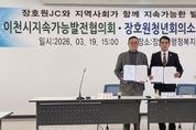 한국시사경제 기동취재팀 | 이천시지속가능발전협의회는 지난 3월 19일, 장호원읍행정복지센터 대회의실에서 장호원청년회의소와 지역사회 청년활동의 리더십 과제 협업을 위한 업무협약(MOU)을 체결했다고 밝혔다. 이날 협약식에는 협의회 측의 정철화 상임회장을 비롯한 박현남 공동회장, 방복길 운영위원장, 임성아 사무국장, 이상용 위원 등 지역위원이 참석했으며, 장호원JC 측에서는 서우진 회장을 비롯한 남윤일 특우회장, 사무국장과 직전 회장 등이 참석해 양 단체의 협업을 자축하는 한편, 남해원 장호원읍장도 참석해 양 단체의 협업 의지를 격려했다. 이번 협약으로, 협의회와 업무협약을 체결한 기관·단체는 총 56개로 늘어나 지역사회 내 지속가능발전 실현을 위한 민관 협력 기반이 한층 강화될 것으로 기대된다. 협의회는 올해 초 제12기 152명의 위원으로 구성되어 지구환경 보호와 기후위기 대응, 탄소중립활동 전개, 사회적 약자 동행, 지역사회 공동체 협업 네트워크화를 목표로, ▲더 좋은 나눔 냉장고 운영 ▲지역사회 지속가능발전목표 제시 ▲나의 지속가능발전목표(SDGs) 실천 사례 챌린지 ▲폐건전지 수거 활동 등을 주 활동으로