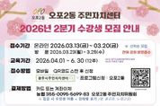 한국시사경제 기동취재팀 | 광주시 오포2동 주민자치센터는 오는 4월 1일 개관을 앞두고 3월 13일부터 20일까지 ‘2026년 2분기 주민자치 프로그램’ 수강생 924명을 선착순 모집한다. 오포2동 주민자치센터는 지난 2022년 오포읍에서 분동된 이후 3년 만에 양벌로 336에 새롭게 조성됐다. 시는 오는 26일 개관식을 개최한 뒤 4월 1일부터 본격적인 운영에 들어갈 예정이다. 이에 따라 그동안 인근 지역 시설을 이용해야 했던 주민들의 불편이 해소되고 생활권 내에서 주민자치 프로그램을 이용할 수 있는 여건이 마련됐다. 이번 2분기 프로그램은 4월부터 6월까지 3개월간 운영되며 건강·스포츠 강좌, 문화·예술 강좌, 교육·기술 강좌, 어린이 강좌 등 총 41개 과정으로 구성됐다. 수강 신청은 3월 13일부터 20일까지 광주시 주민자치센터 누리집을 통한 온라인 접수 방식으로 진행된다. 다만, 정원 미달 강좌에 한해 3월 23일부터 25일까지 오포2동 주민자치센터에서 현장 방문 접수도 추가로 실시할 계획이다. 수강료는 강좌별로 3개월 기준 5만4천 원에서 7만2천 원까지이며, 국가유공자와 장애인, 한부모
