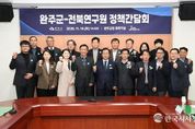 한국시사경제 김숙영 기자 | 완주군과 전북 싱크탱크인 전북연구원이 18일 오후 완주군청에서 유 군수와 장 원장대행을 포함한 주요 관계자 20여 명이 참석한 가운데 ‘완주군-전북연구원 정책간담회’를 열었다. 이번 간담회는 완주군의 주요 현안사업을 전북연구원과 함께 논의하며 최적의 대응 방안을 모색하기 위해 마련됐다. 이날 주요 안건은 ▲피지컬AI 산업 육성 및 활성화 전략 ▲피지컬 AI 및 2차 공공기관 이전 부지 입지 검토 ▲경관조성을 통한 관광·축제 활성화 방안 ▲완주군 외국인 정책 운영 방향 등으로 양 기관은 안건별 주요 쟁점, 대응 방향 및 계획 등에 대해 심도 있는 토론을 진행했다. 유희태 군수는 “이번 간담회는 군과 연구원의 상시 협력체계를 더욱 공고히 할 수 있는 기회”라며, “피지컬 AI와 관광·축제 활성화 등 군정 주요 현안 대응과 신성장 동력 발굴 등을 위해 앞으로도 전북연구원과 긴밀히 소통하며 협력해 나가겠다”고 말했다. 장성화 대행은 “완주군은 전북 신산업 발전을 선도하는 전진기지”라고 말하며, “완주군이 전북 경제의 중심도시로 도약할 수 있도록 적극적으로 지원하고 기관 간 협업